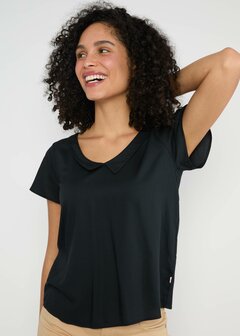 Relaxte blouse gemaakt van eco LENZING? en EcoVero? vezels ? een textielwonder als het gaat om stijl en draagbaarheid! Met zijn zijdezachte viscose materiaal en losse pasvorm is dit juweeltje voorbestemd om goed te voelen, hoofdmateriaal: Viskose (LENZING? ECOVERO?) 100% V-hals met aangehechte kraag wijde, losjes vallende mouwen De diepe V-hals met nette kraagpunten voor en achter geeft de chique top een elegante touch;˜de wijde kapmouwtjes zitten bijzonder comfortabel en onderstrepen de vrouwelijke esprit van deze textielbeauty!