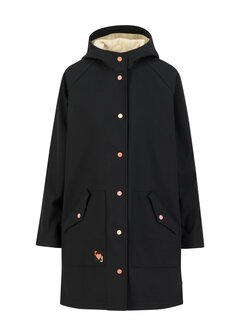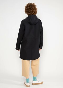 Tussenjas van Blutsgeschwister middellang wijd model wind en waterbestendig met capuchon.