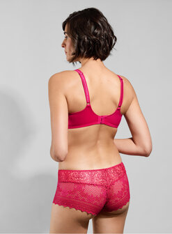 De Cassiopee spacer BH van Empreinte is uitgevoerd in de kleur lipstick. Deze rose kleurige BH heeft naadloze cups en is daardoor onzichtbaar onder strakke kleding. Deze BH geeft je een mooi smal silhouet onder je kleding door de unieke u-vorm beugel welke door Empreinte is ontwikkeld. De Cassiopee BH heeft tevens een breed rugpand en wat bredere schouderbandjes en zit daardoor heel comfortabel. Het bredere rugpand geeft ook wat meer steun in je rug. Tussen de cups is een zilverkleurig bedeltje verwerkt! Combineer deze mooie BH met een van de bijpassende broekjes gemaakt van het fijnste Franse kant.