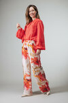 Een blouse met lef. De botanische print doet denken aan uitgelopen waterverf en geeft het ontwerp een kunstzinnige uitstraling. De soepele crinkle-stof voegt extra beweging toe en draagt prettig. De tuniekhals met V-uitsparing en boordje zorgt voor een nonchalante look. Driekwart pofmouwen met elastische boorden voegen volume toe. Deze blouse style je makkelijk van dag tot avond en combineert prachtig met palazzobroek Rob.