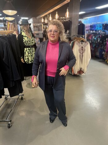 Lange sportieve broek met uitlopende pijpen in jeans look en koord. Let op valt klein dus neem een maat groter.