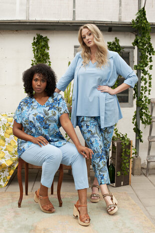 T-shirt met V-hals en slanke mouw tot aan de elleboog. Uitlopend model.